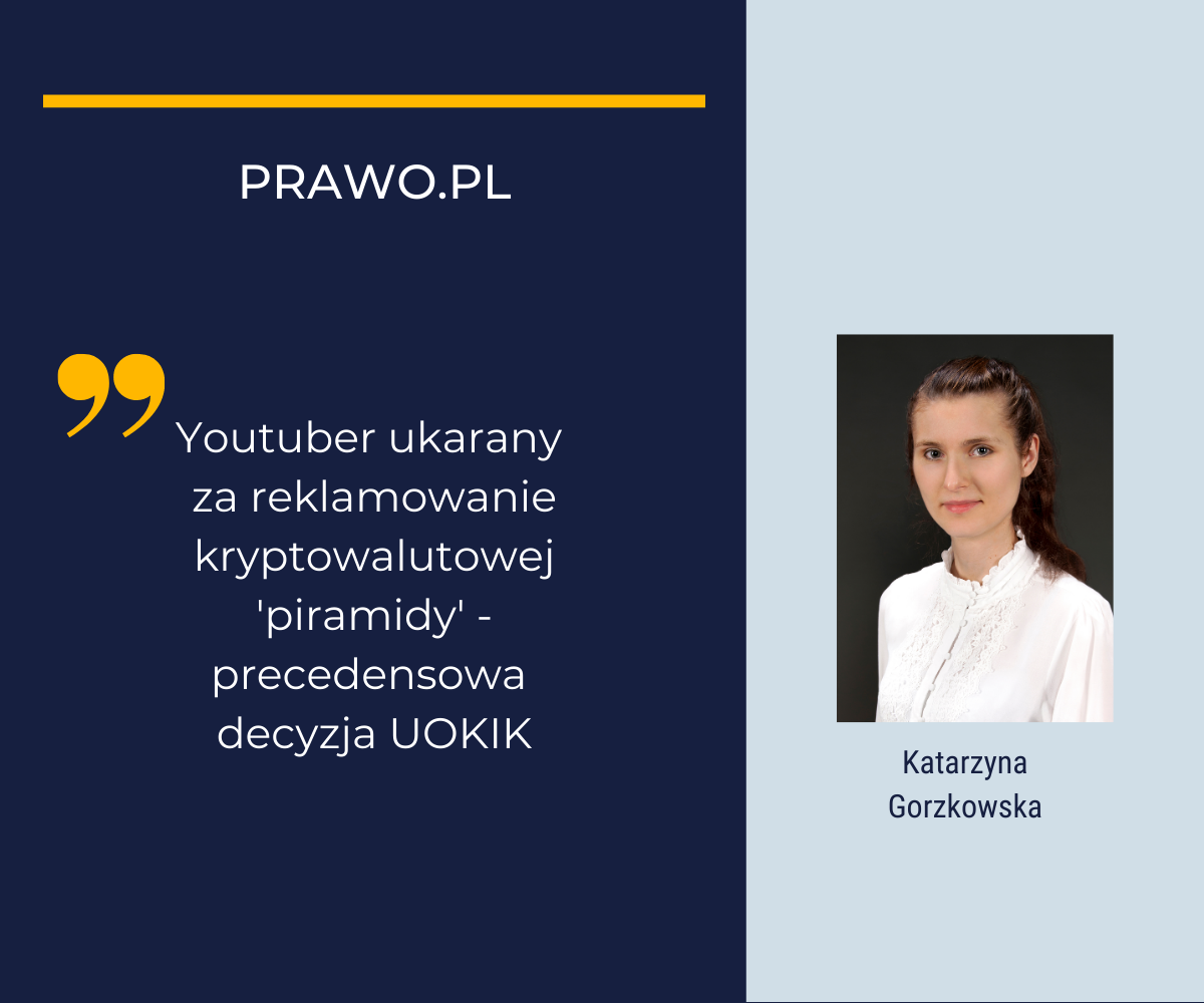 Systemy typu „piramida” nie są nowym zjawiskiem na rynku finansowym, podobnie jak różne metody zachęcania klientów do udziału w nich. Jednak dotychczas „naganiacze” na systemy typu piramida nie otrzymywali kar finansowych – pisze Katarzyna Gorzkowska, komentując surową karę dla prowadzącego taką działalność youtubera